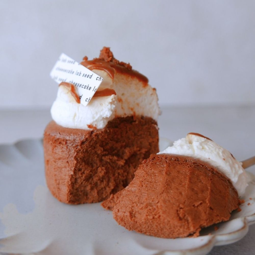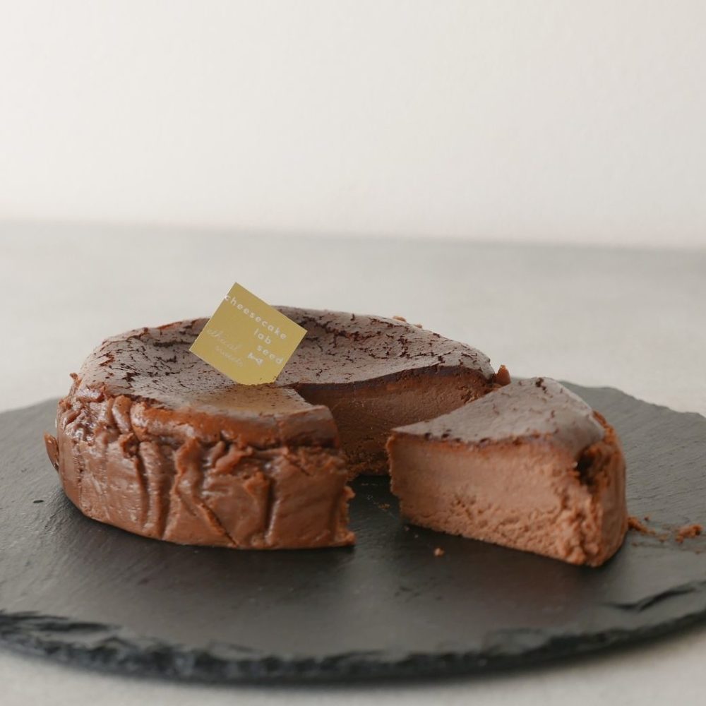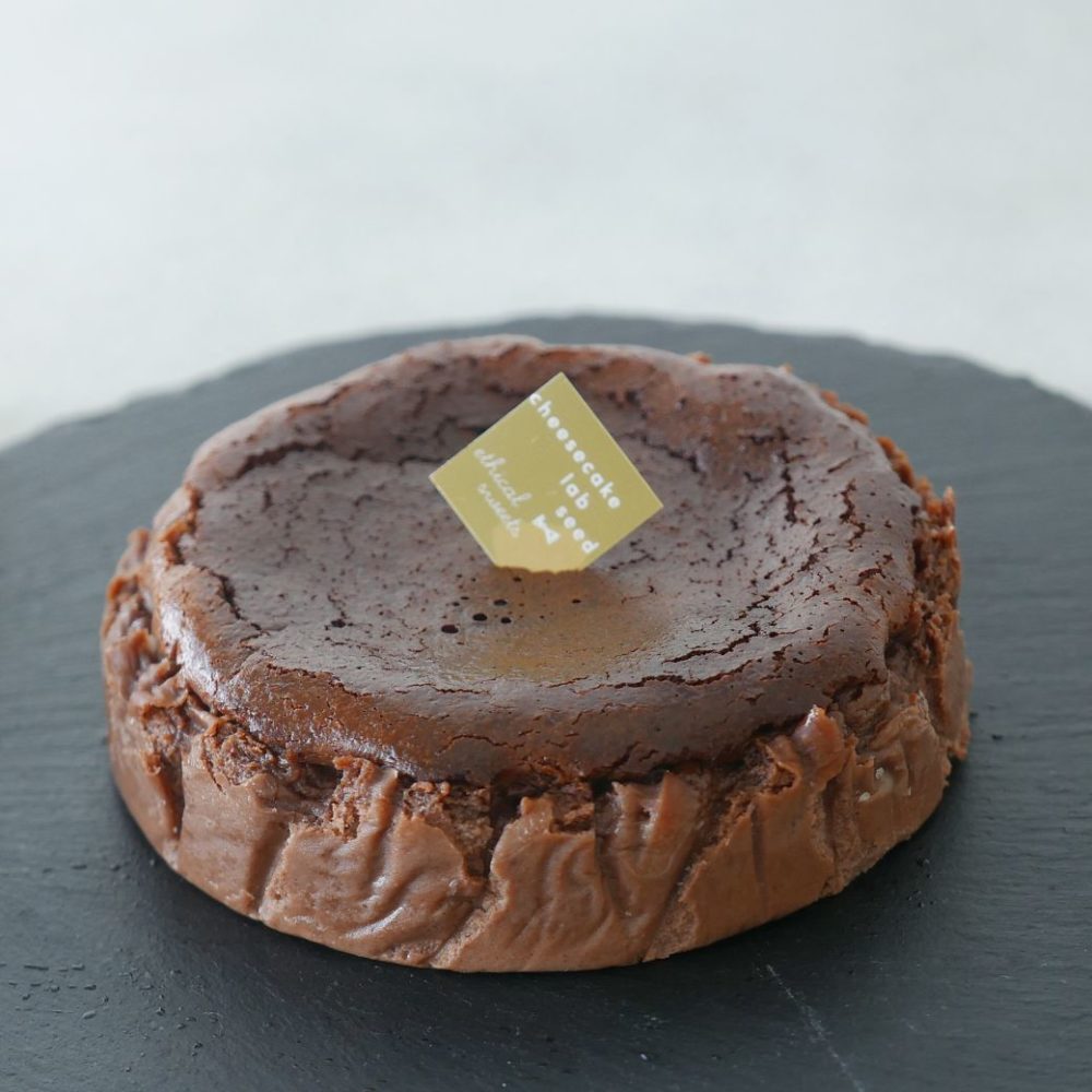 有機チョコレートを使用した濃厚ショコラチーズケーキに純生クリームと自家製キャラメルを合わせた贅沢なチーズケーキ。