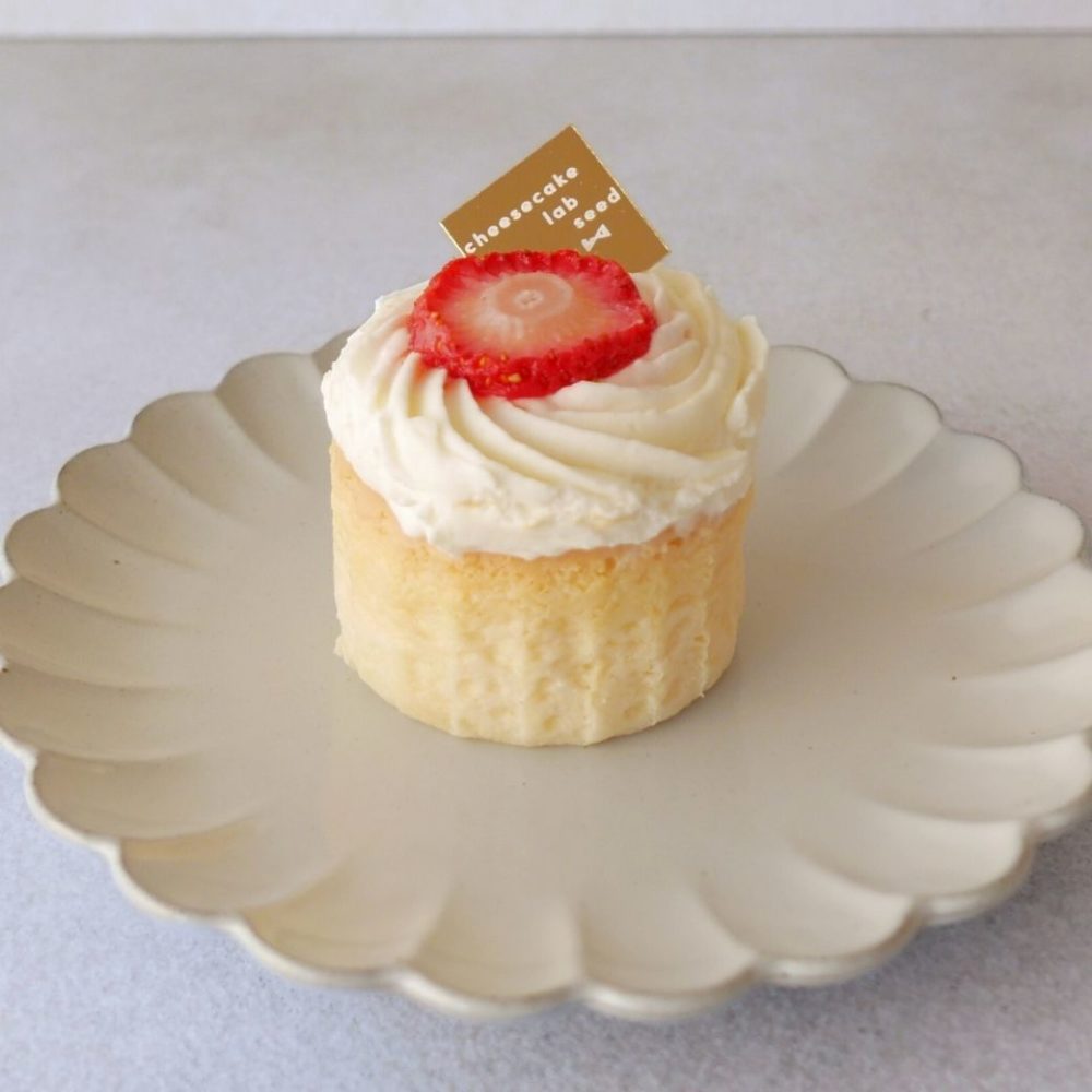 スフレチーズケーキに自家製苺ソースとミルキーな純正クリームを合わせた黄金比率のショートです